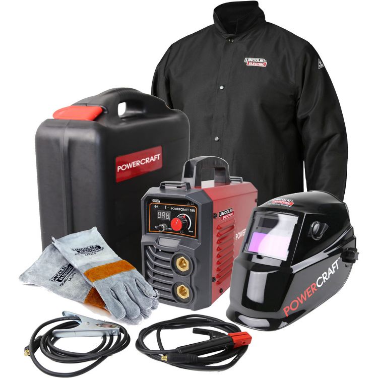 K69059-1A Lincoln PowerCraft 10-185A Inverter Arc Welder Ready-To-Weld Package Includes Arc/Earth Leads, Carry Case, 15A Plug, Auto-Darkening Helmet, Jacket & Gloves