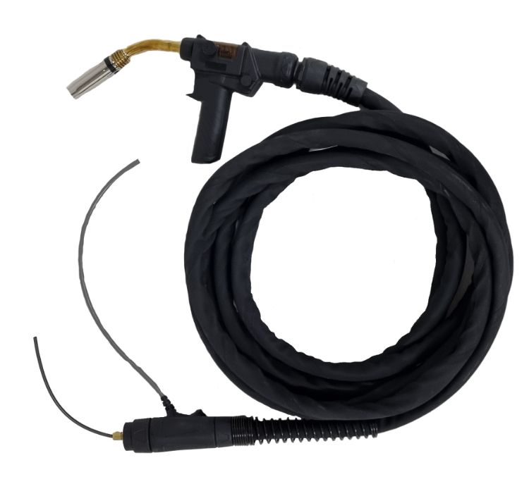 Strata 24V Air-Cooled Push-Pull Gun 8M, C/with 45 Deg. Neck, 10K Wire Speed Control Pot. Takes the common Binzel MB36 consumables.
